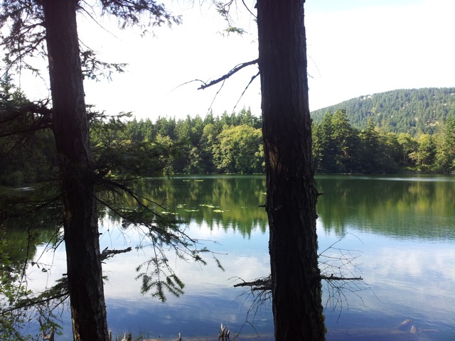 Summer is winding down and the nip in the air is saying ‘fair warning’. I am glad for a week’s long respite from Three October workload so I can squeeze in some afternoon walks in the late summer sunshine. Just up the street – 5 minutes – is the Cascade Trail that winds up the side of a pretty waterfall that was once the conduit for Moran’s water supply, from Cascade Lake above, for his mansion on the Rosario waterfront, now a resort. Abject, gaping, rusting metal pipe line guide our way, red-brown in the leafy shadows, some teetering above a drop. Atmospheric, they too offer a ‘fair warning’ – stand back.