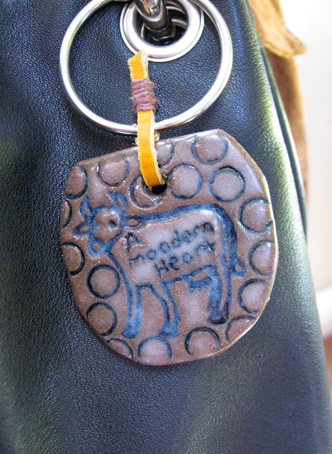 Three of my latest cow pins/pendants/bagtags are available for bids this Saturday at the Salmonberry School Silent Auction and Dinner on Orcas Island – the school’s annual fundraiser. Each pin measures 2.5″ x 2″ and is handstamped and carved from brown clay that is then glazed in iron oxide and satin white. If there’s one you like, contact me at optimismandco@gmail.com with your bid (any amount) BEFORE 3pm Pacific Standard Time, Saturday, May 4th and I’ll put your name on the bid list. I’ll contact you with delivery details if you win!