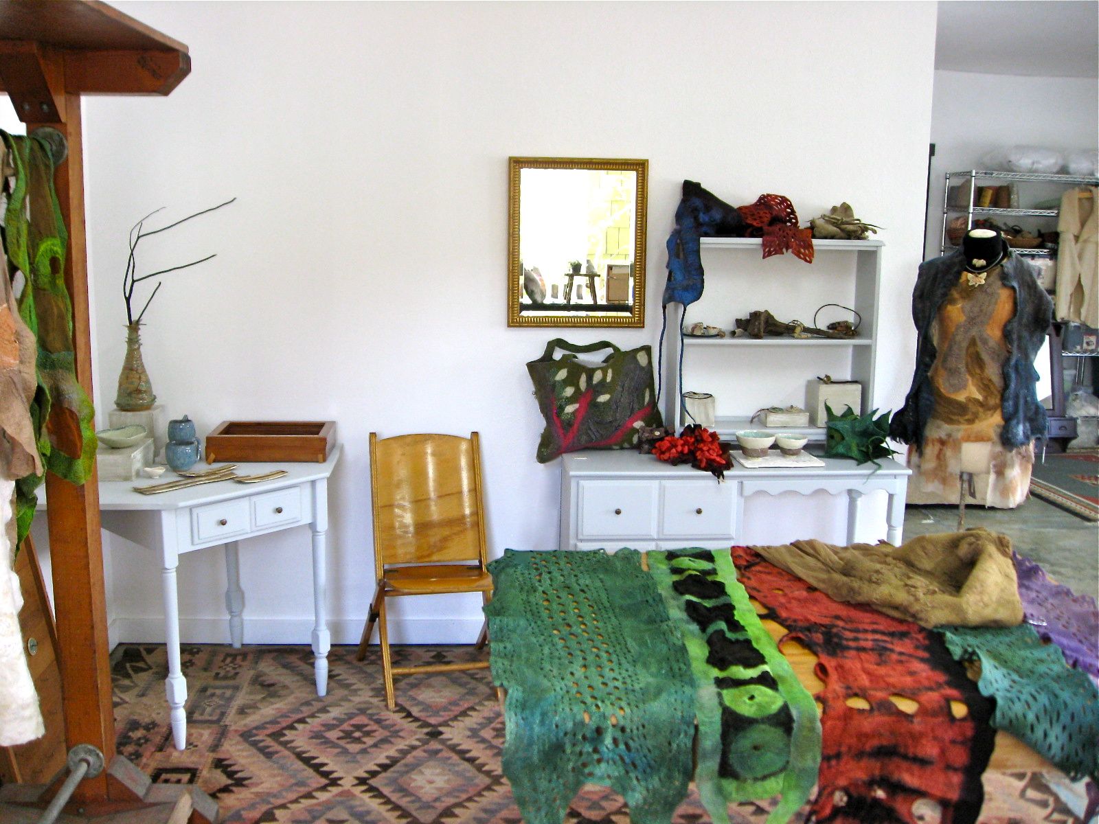 My wish for an in-town working studio with gallery space came true this past winter. I found a perfect studio partner in felt textile artist Christa Smith and over a two-month period, we found a spot in town and set out to create a well-lit, contemporary blank slate that was versatile for accommodating our art making needs. It called for pulling out old carpet, tearing down walls, scrapping out old floor paint, and a total whitewash – lots of sweat equity made possible by supportive husbands and children. Now we share a space we love in Eastsound Square that is enjoying a revival of sorts at the moment, having had several artists move in and set up intriguing spaces too. I think we are on to something…