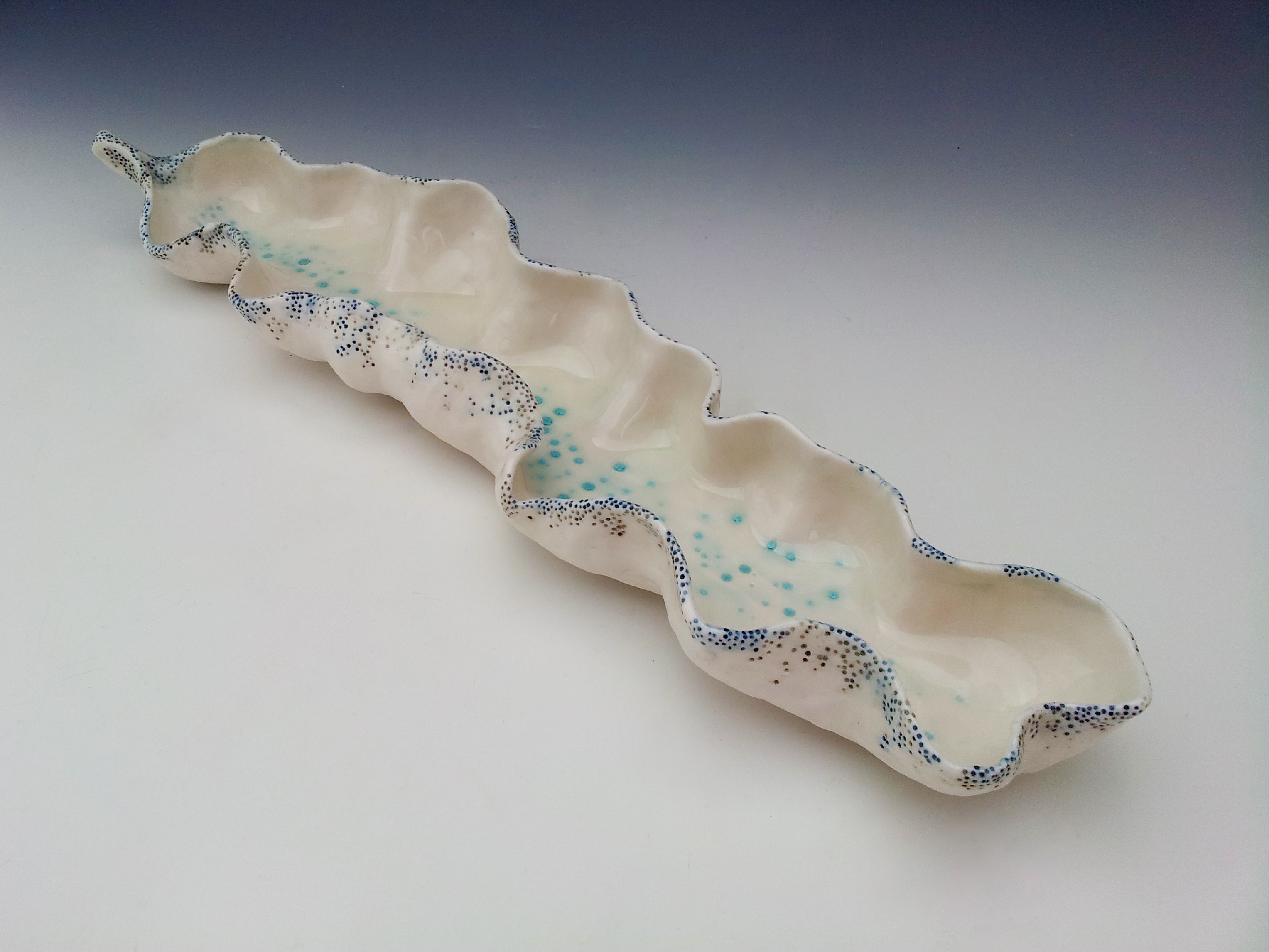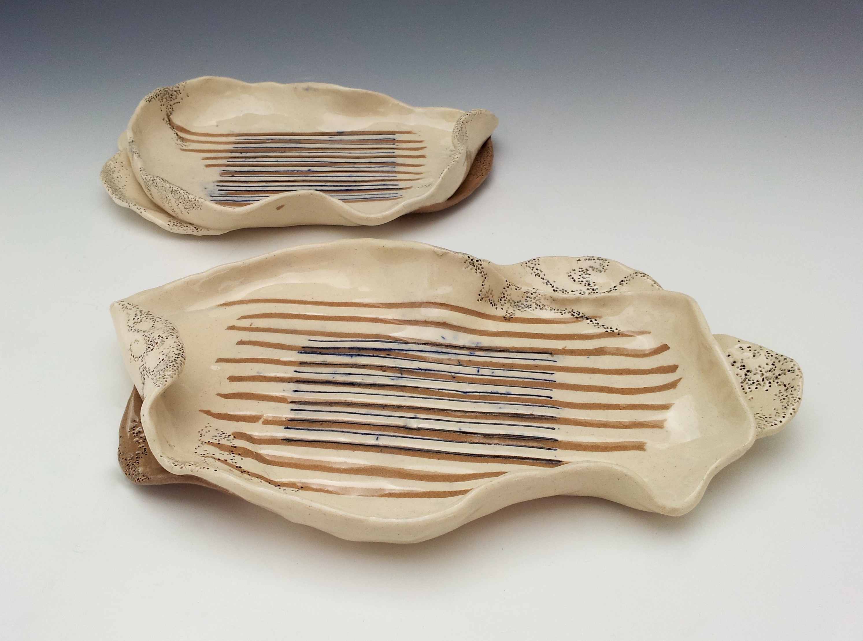 Taking stock of the body of work I showed at this past summer’s Artists Open Studio Tour on Orcas Island, it felt good to discover an aesthetic consistency running through my ceramic work. The forest floor, ocean find and woodland imagery are repeatedly used, and so are the organic textures and my tendency to leave or reveal the natural colour of the clay body. The show was really the first time I had all my recent work displayed together and it was gratifying to see how the individual pieces, whether functional, wearable or wall art, could come together to form a cohesive tableau.
